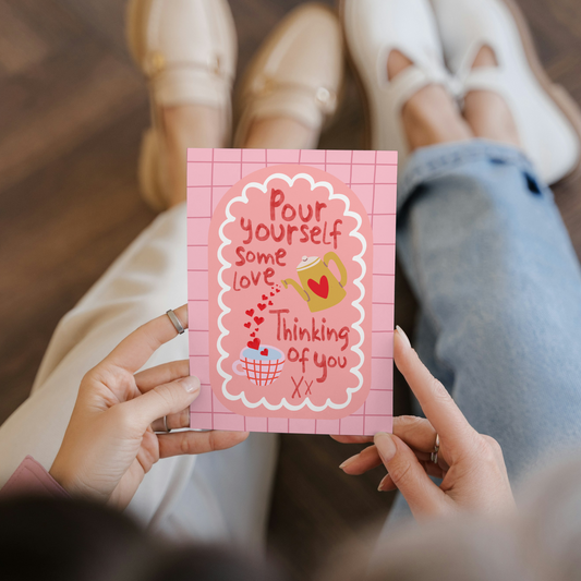Pour Yourself Some Love Kettle Design Cute Thinking of You Card
