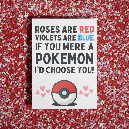 Pokemon, Valentine's Day Card, Roses are red, funny, Pikachu, Valentine's, for him, for her