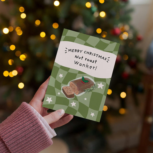 Nut roast Vegetarian Vegan Christmas dinner Funny Rude Card for vegetarians For vegans For him For her For friend For them Jay Inbetweeners
