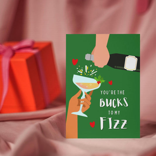 Prosecco lover Bucks Fizz themed Celebration Couple Chrismtas Card for him for her for husband for wife for partner for happy couple for all