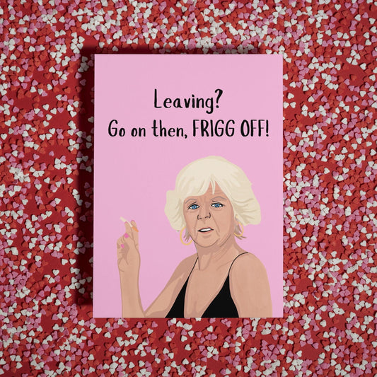 Funny Madge Harvey Leaving Card - "Frigg Off" - Perfect Farewell Card for Benidorm Fans