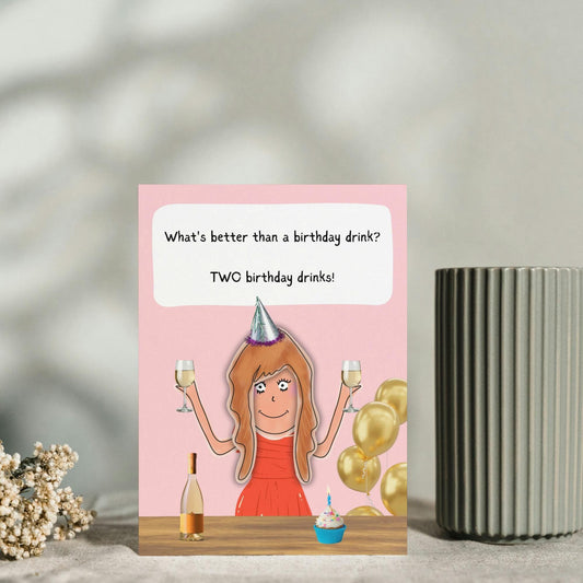 Funny Birthday Drinks Comic Card - Humorous Illustration Card for Friends, Best Friends & Girlfriends - Fun Party Greeting Card