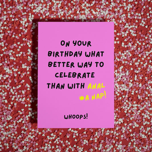 Rude Birthday Card - "On Your Birthday, What Better Way to Celebrate Than A Little Anal * A Nap!" - Hilarious Humour for Adults