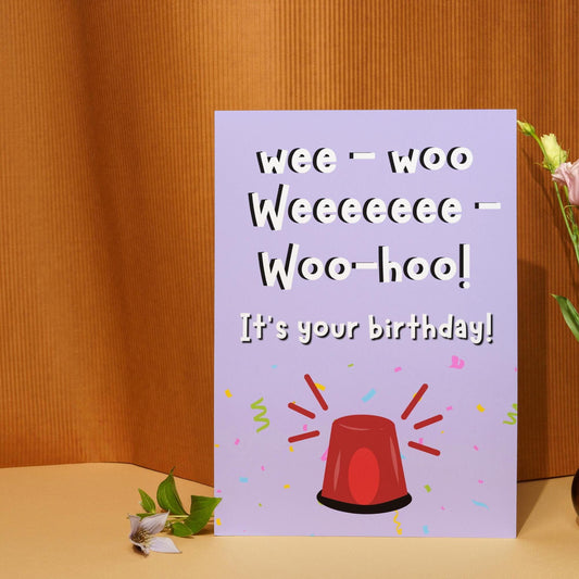 Funny Police Siren Birthday Card – Humorous Pun Greeting Card for Police Officer, Colleague, or Friend