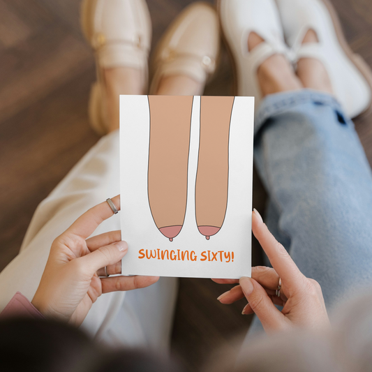 Funny Saggy Boobies 60th Birthday Card – Cheeky Swinging Sixties Milestone Card, Humorous 60th Birthday Card for Women, Humorous 60th Gift