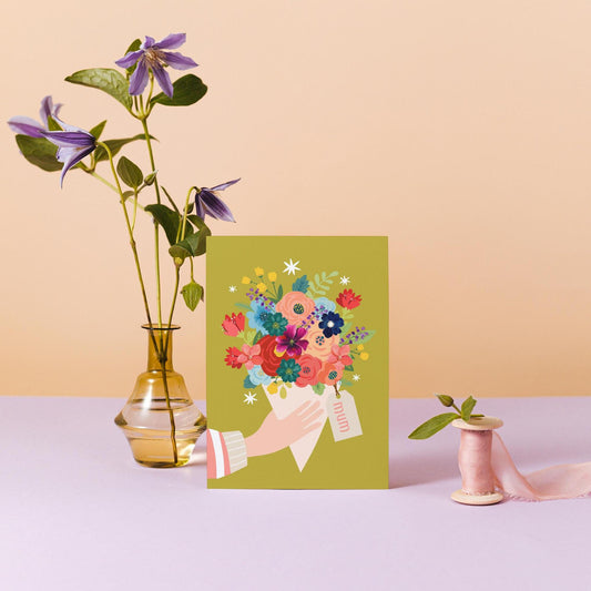 Pretty Contemporary Mother's Day Floral Bunch Card | Watercolour Floral Design | Handcrafted Greeting Card for Mum