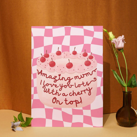 Pretty Contemporary Cherry Cake Mother's Day Card | love you lots | Unique Greeting Card for Mum | Feminine Birthday Card | Sweet Treat Card