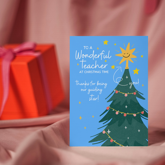 Christmas Card for Teacher - Thank You for Being Our Guiding Star - Star Tree Topper Design - From Students
